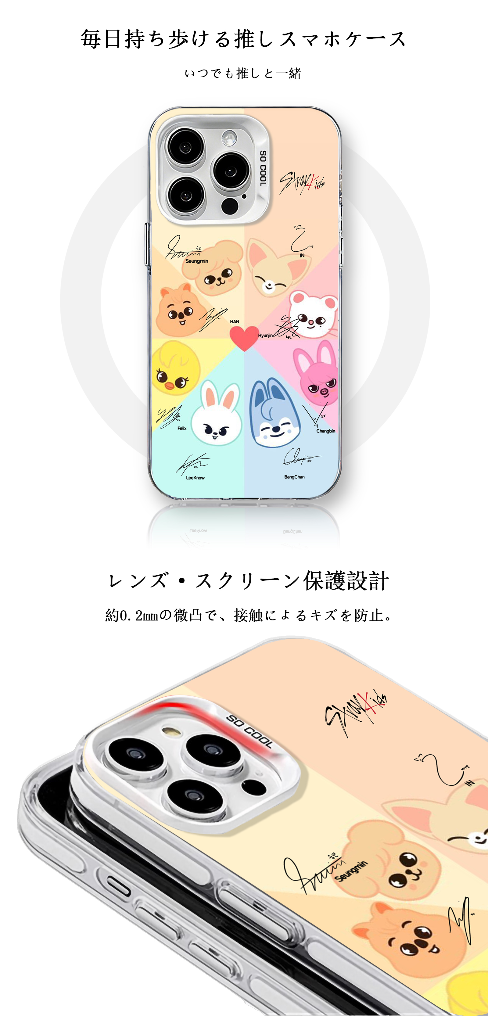 高精細印刷によりデザインが色あせしにくく、鮮明な状態を長期間キープ。日常使い・推し活どちらにも適したケースです。