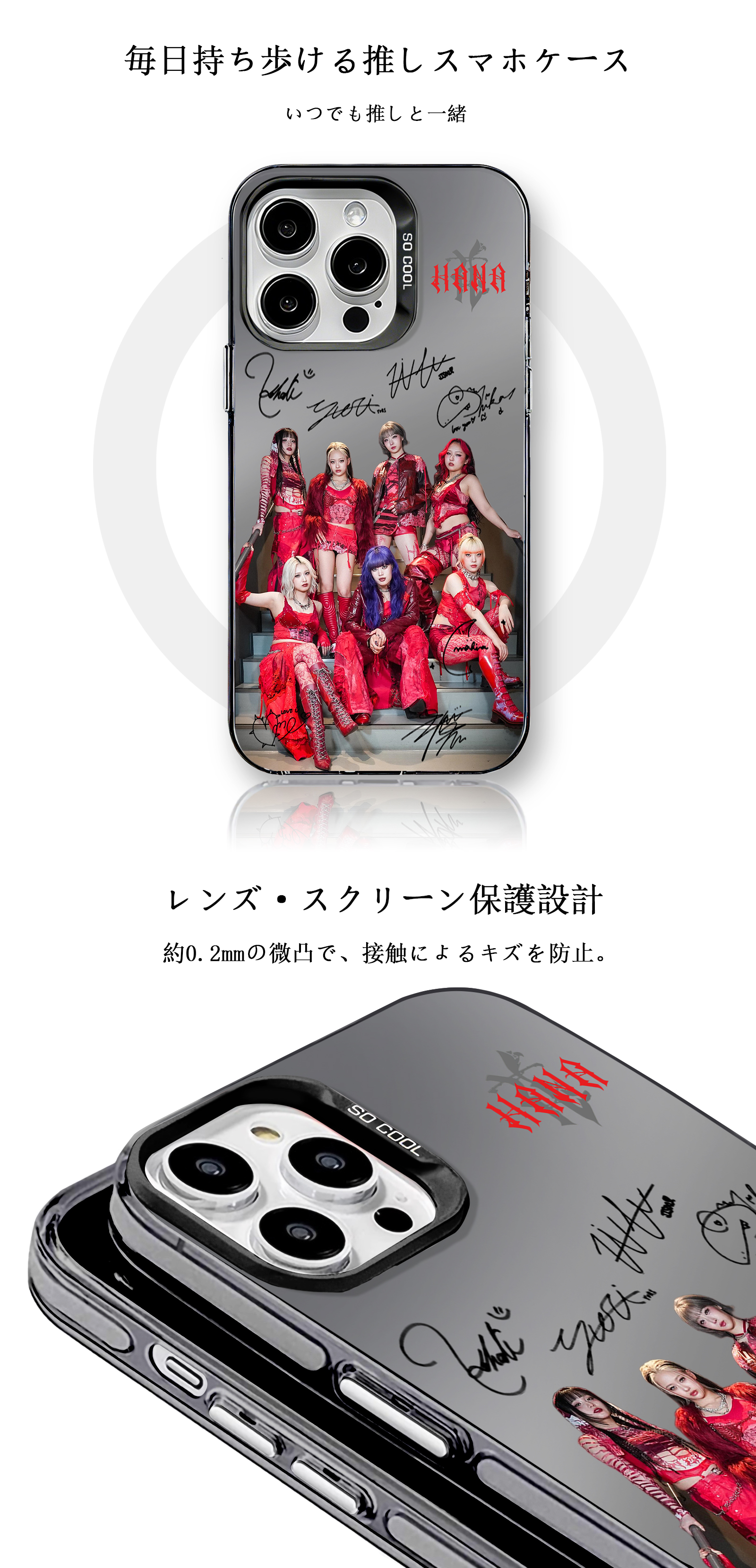 高精細印刷によりデザインが色あせしにくく、鮮明な状態を長期間キープ。日常使い・推し活どちらにも適したケースです。