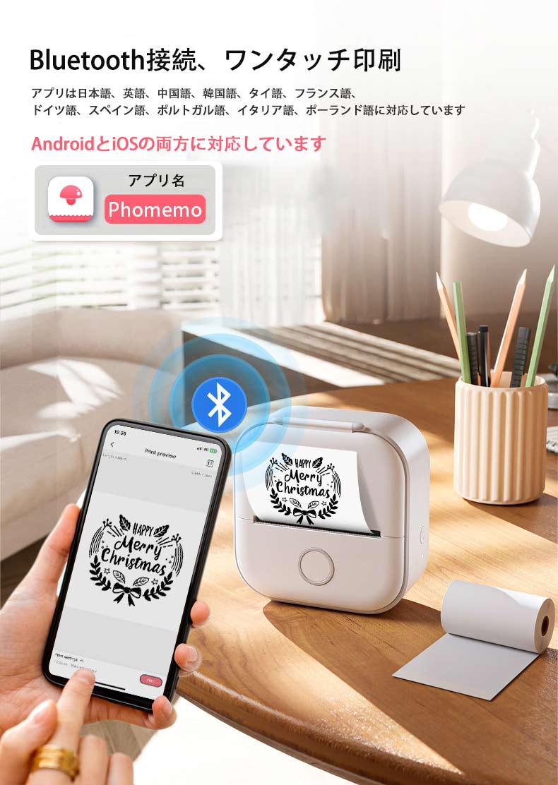 熱転写技術を採用したポケットプリンターは、高価なインクカートリッジを使用する必要がなく、あなたのための経済的で高効率のソリューションを提供し、あなたのすべてのプリントニーズを満足できます。長いバッテリー駆動時間と超持ちやすいデザインによって、いつでもどこでも思いのままプリントできます。ラベル、メモ、そしてその他のドキュメントなどをプリントする場合でも、手軽くポケットプリンターで対応できます。また、Phomemoアプリを利用し、気楽にBluetoothでスマートフォンとプリンターに接続し、数秒内でプリントできます。今すぐPrint Pocketの便利さと幅広い対応を体験しましょう!