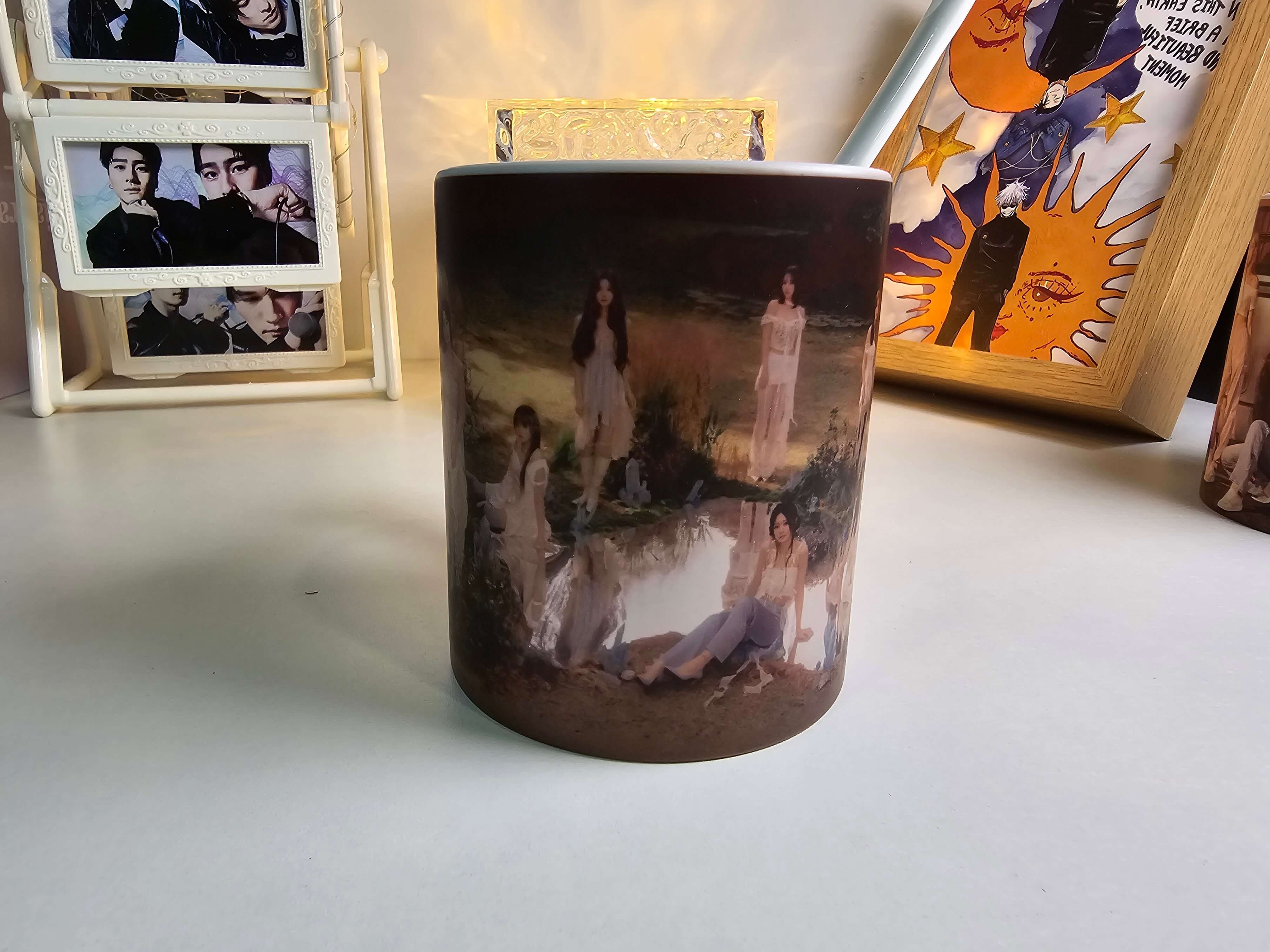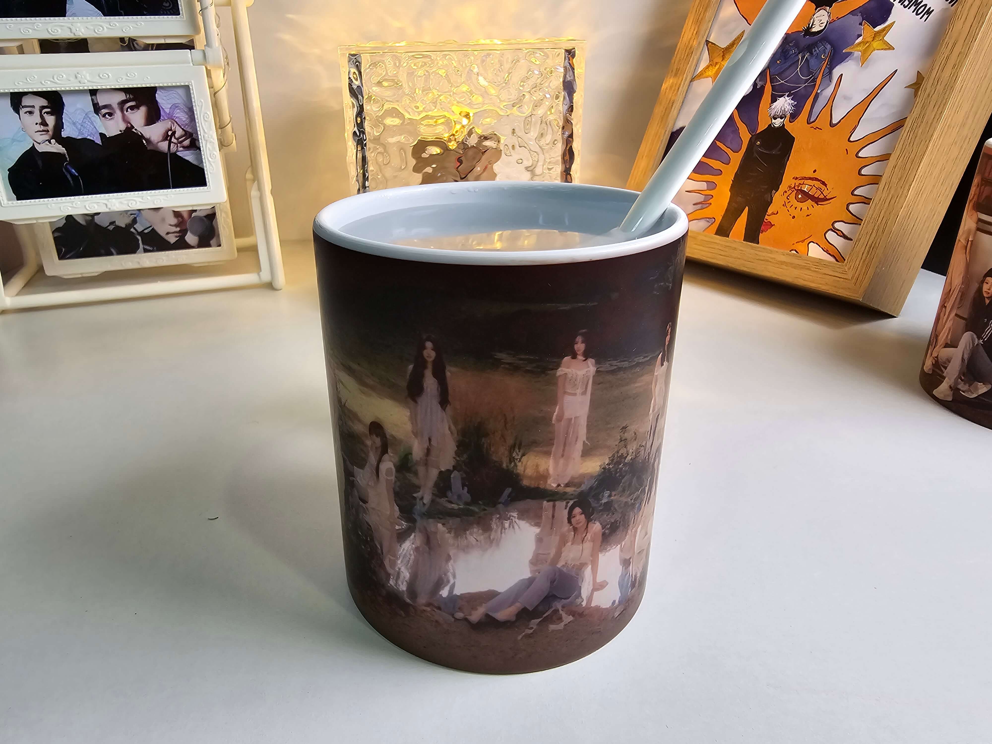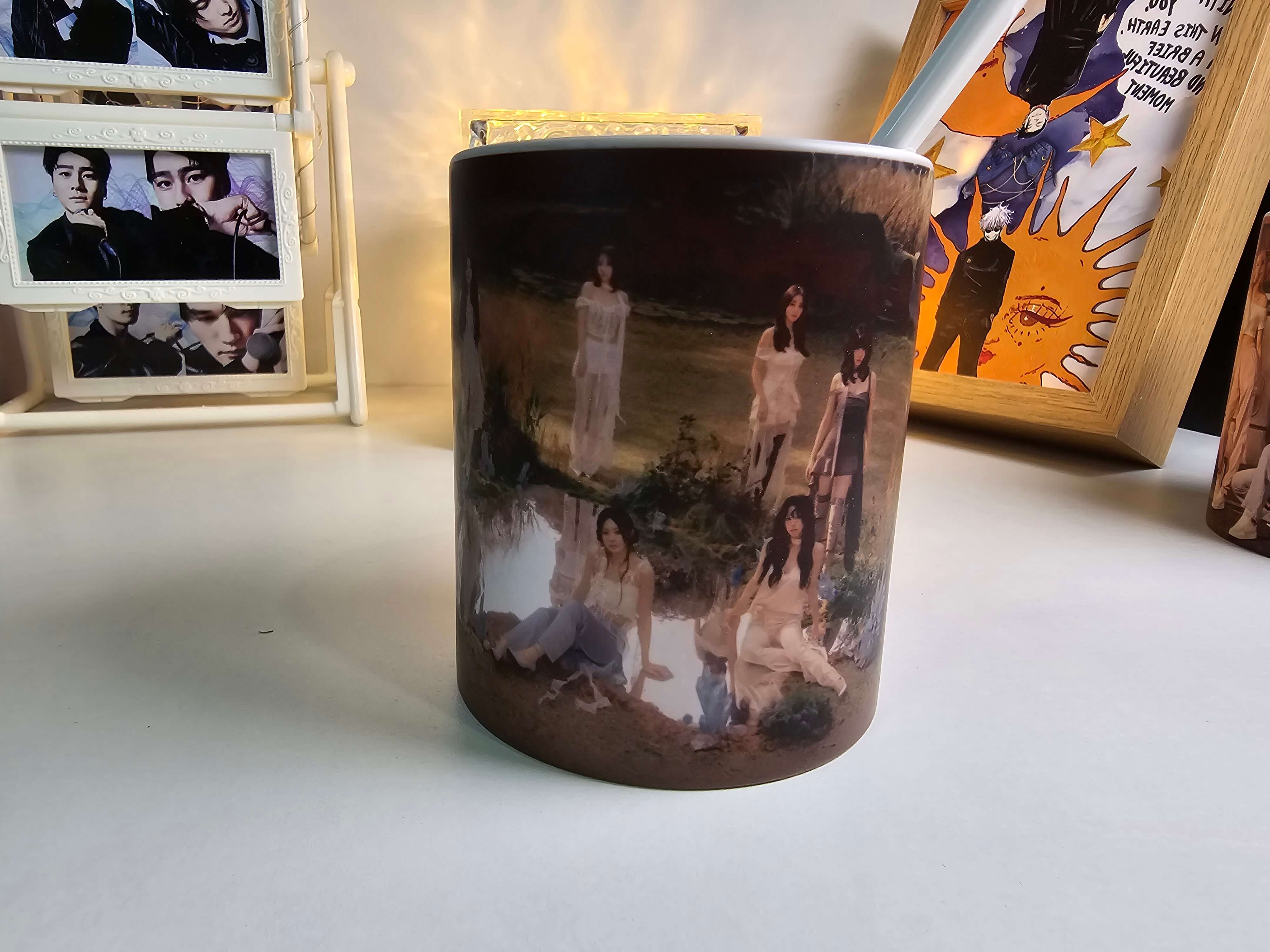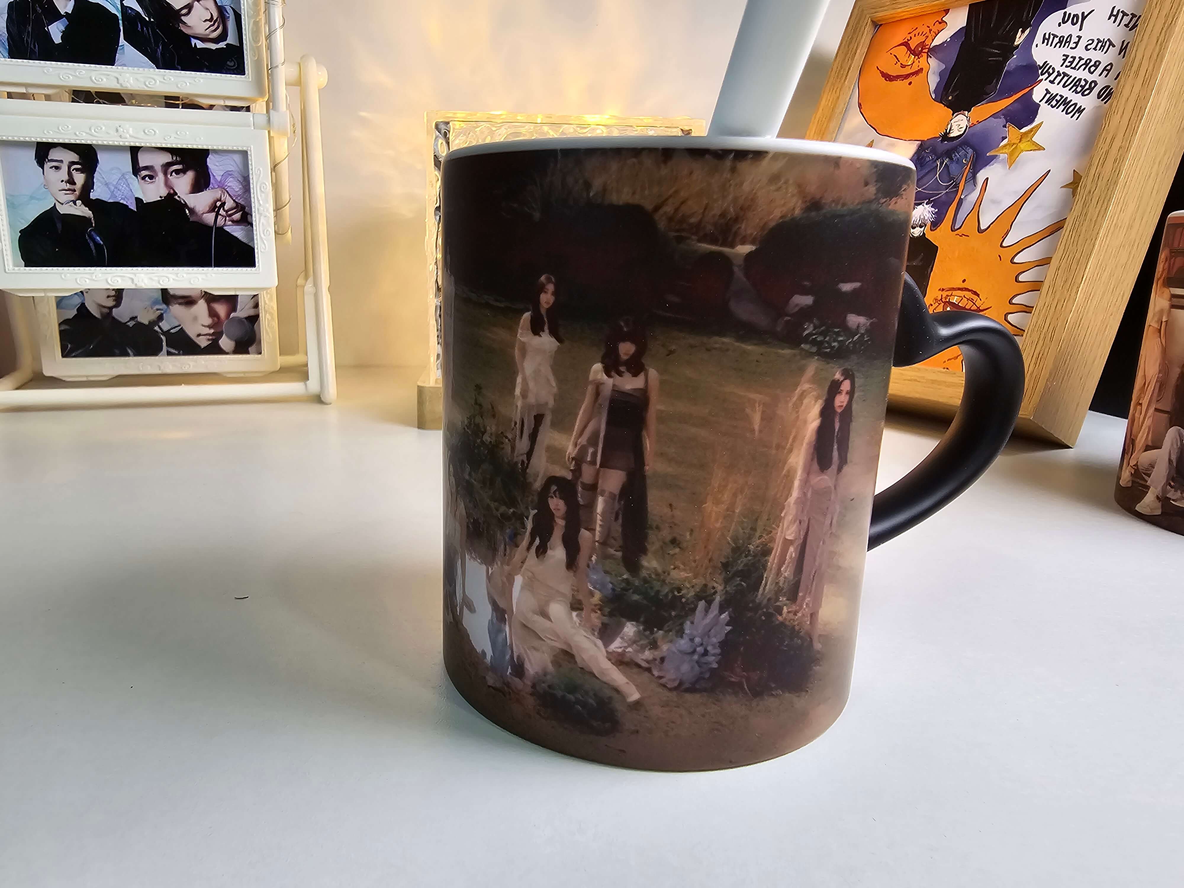 これは不思議なマグカップです。見た目は普通の黒いカップですが、お湯を注ぐと徐々に美しい模様が現れます。